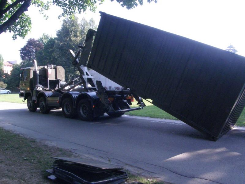 Príprava statickej ukážky vojenskej techniky - vykládka vozidla