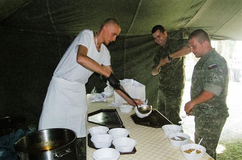 Výdaj stravy - vojenského guľášu príslušníkmi Opravárenského práporu Martin