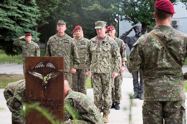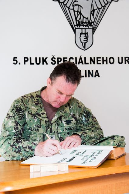 S aktuálnou situáciou v slovenských špeciálnych silách sa v piatok 27. júla 2018 prišiel do žilinského 5. pluku špeciálneho určenia zoznámiť viceadmirál Colin Kilrain, veliteľ špeciálnych operácií NATO.