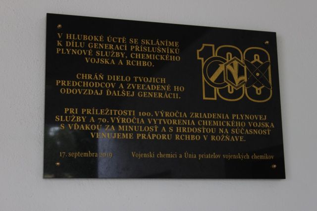 Program sa v utorok 17. septembra 2019 začal nástupom čestných hostí v priestoroch práporu rchbo. Po krátkom príhovore veliteľa práporu rchbo podplukovníka Olivera Toderišku  a podplukovníka v.v. Petra Nagya, bola slávnostne odhalená pamätná tabuľa, ktorú práporu venovali Vojenskí chemici a Únia priateľov vojenských chemikov.