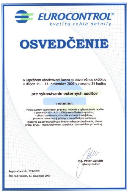 Druhý novembrový týždeň sa na Úrade vojenského letectva niesol v znamení auditu. V priestoroch ÚVL MO SR sa v dňoch 11. – 13. novembra 2009 konal už v poradí druhý kurz pre vykonávanie externých auditov. Účastníkmi kurzu boli príslušníci ÚVL MO SR. Kurz bol ukončený písomným preskúšaním a vydaním osvedčenia o úspešnom absolvovaní kurzu pre vykonávanie externých auditov.
